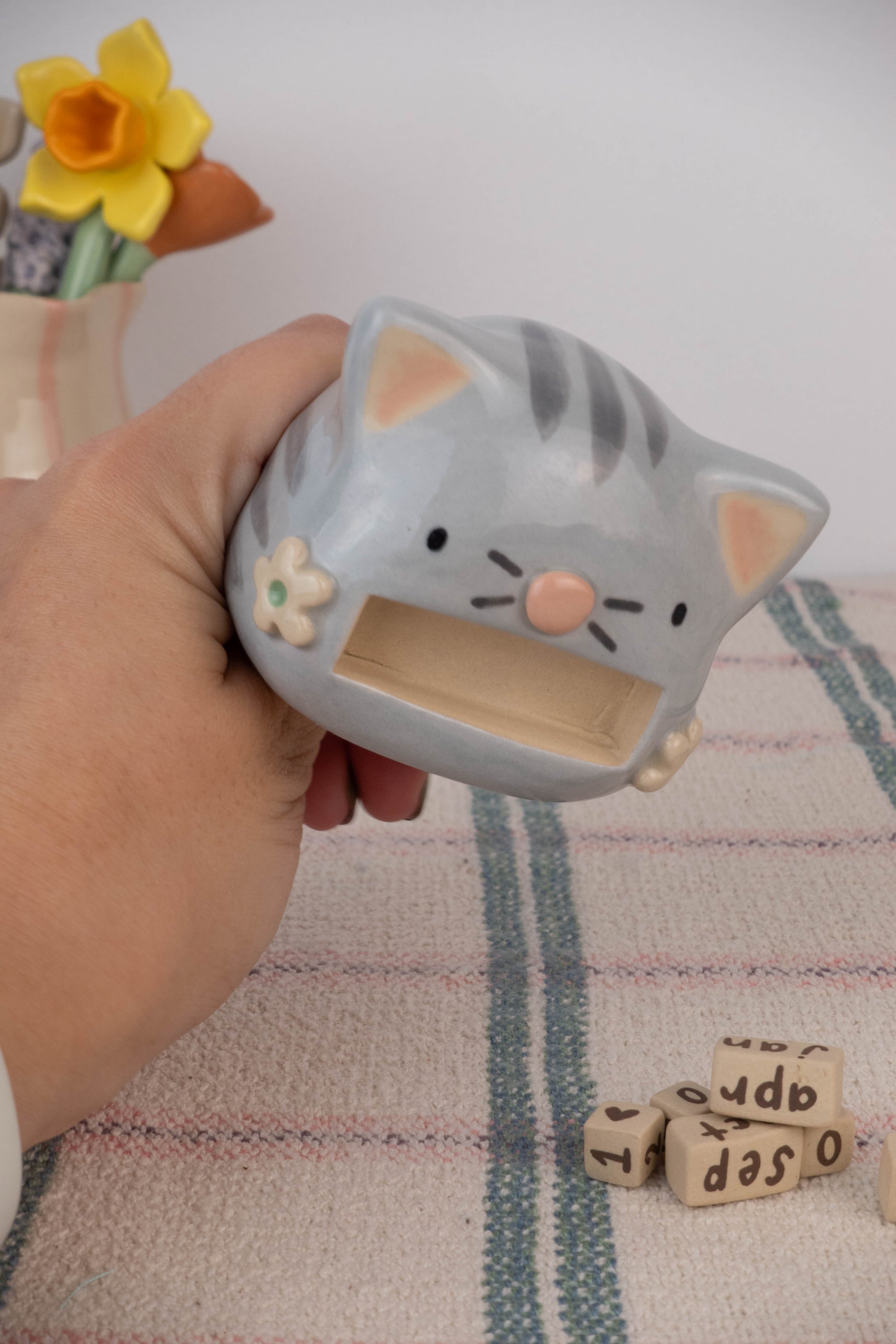 This listing is for 1 cat calendar which includes: the cat itself, 3 number blocks, 3 month rectangular blocks. All pieces are made of stoneware ceramic and glazed with various colours!
