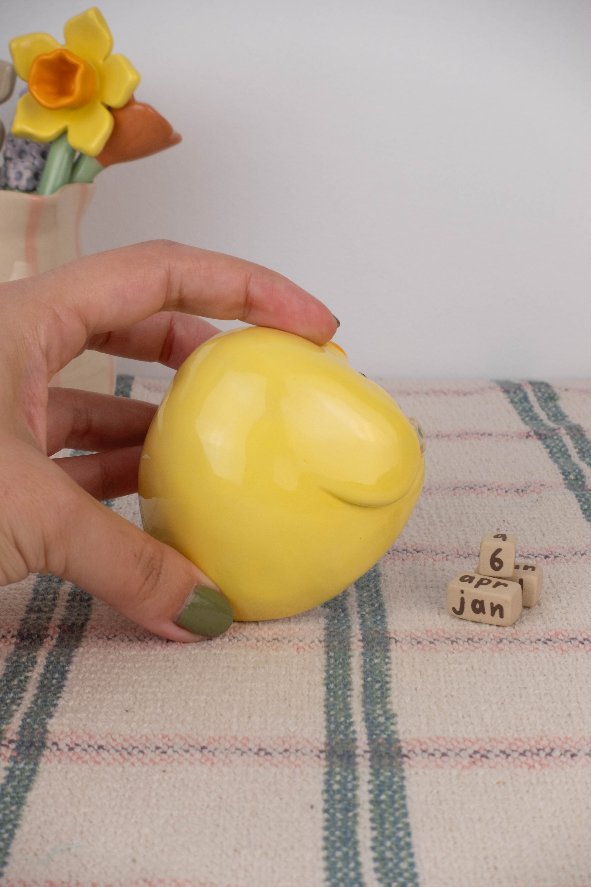 This listing is for 1 duck calendar which includes: the duck itself, 3 number blocks, 3 month rectangular blocks. All pieces are made of stoneware ceramic and glazed with various colours!