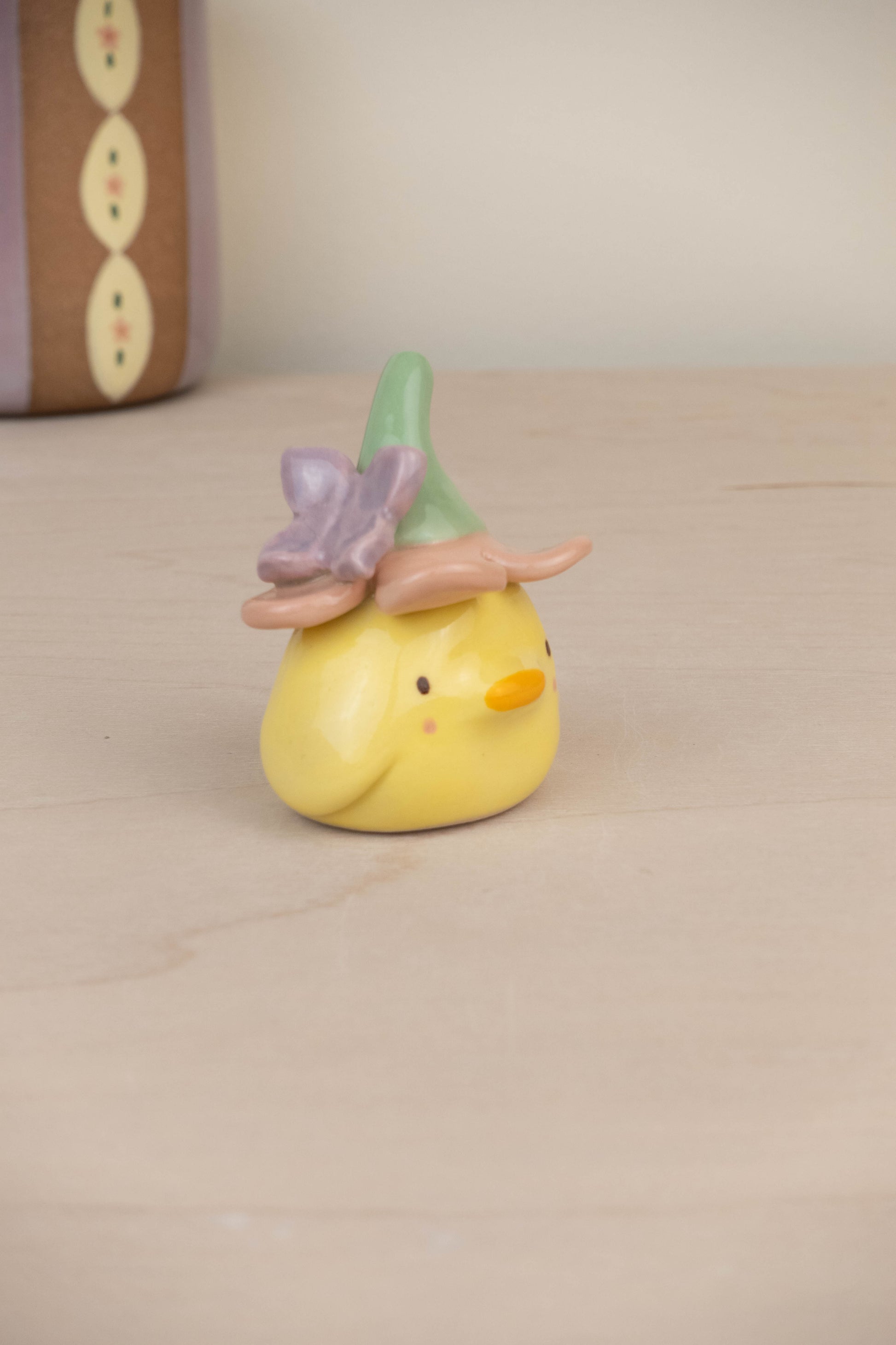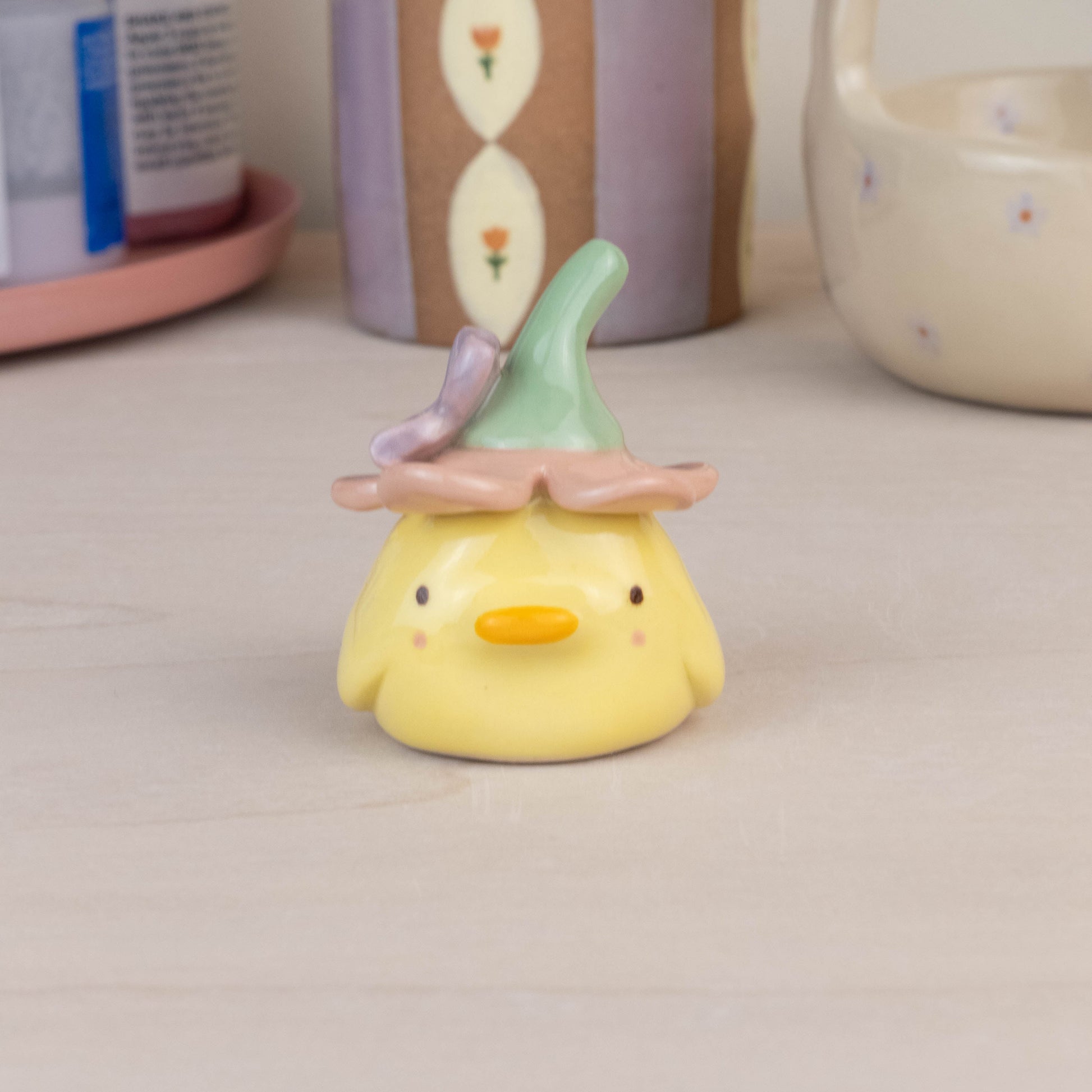 This listing is for 1 duck! it is slightly larger than the other mini ducks. The duck is wearing a tiny upside down flower on its head! (it is not removable).