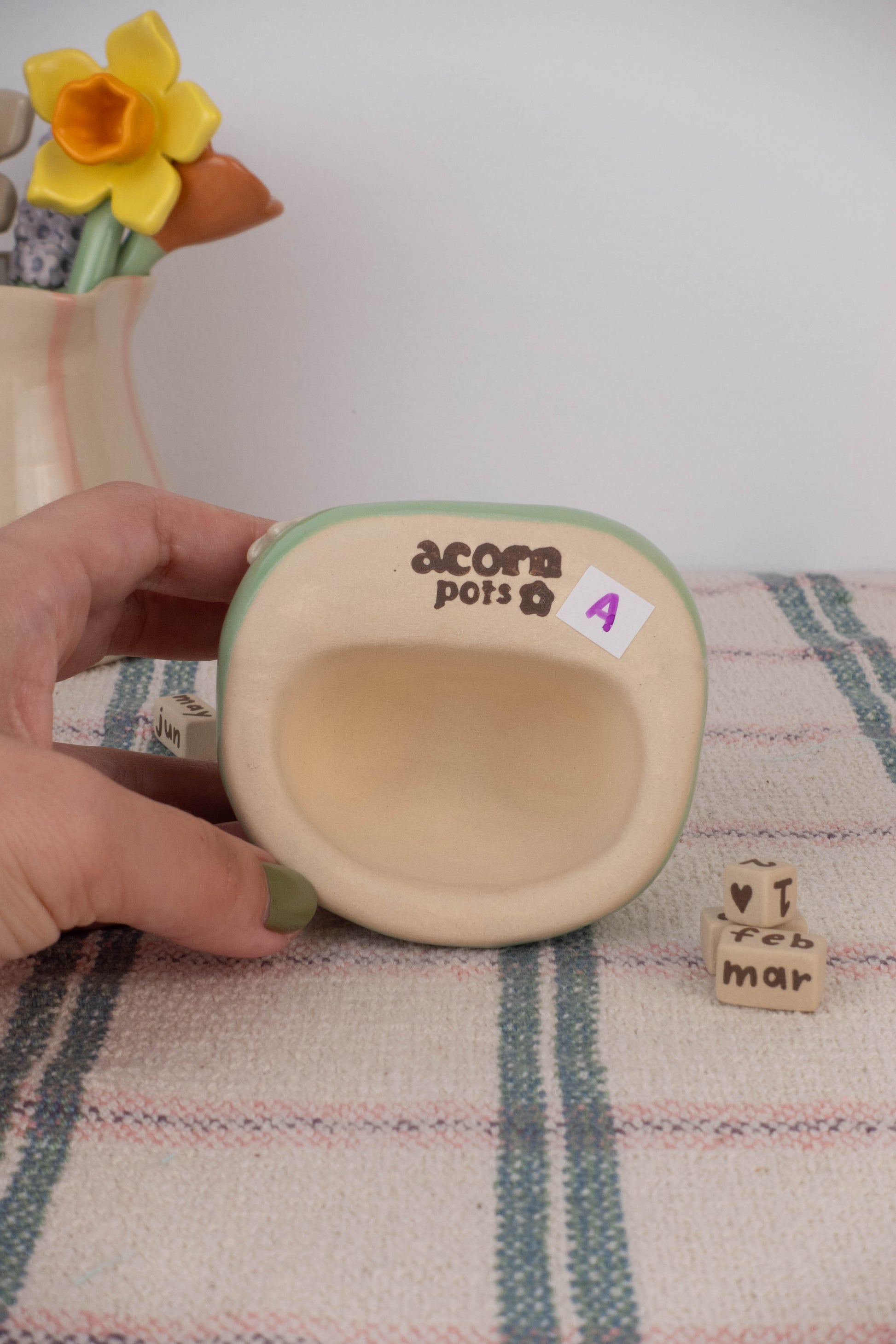 This listing is for 1 frog calendar which includes: the frog itself, 3 number blocks, 3 month rectangular blocks. All pieces are made of stoneware ceramic and glazed with various colours!