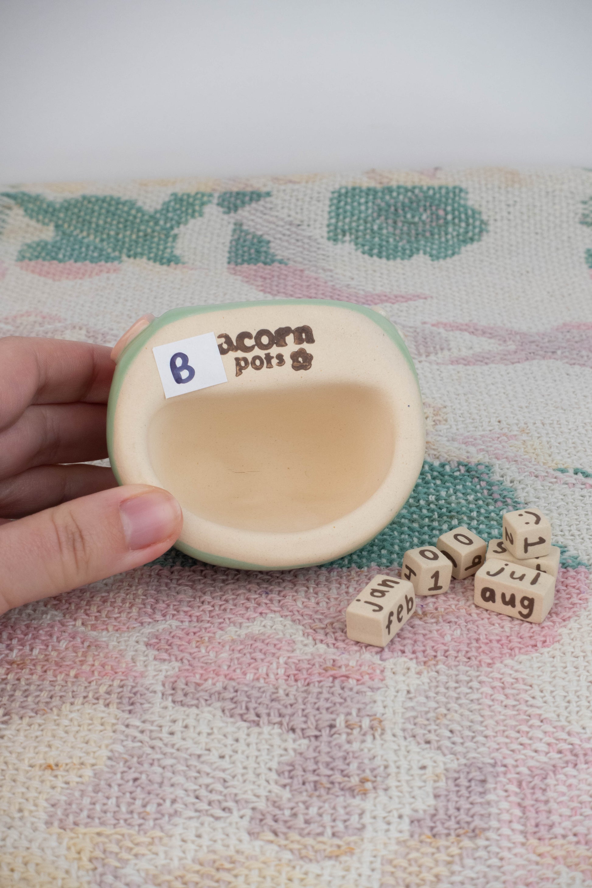 This listing is for 1 frog calendar which includes: the frog itself, 3 number blocks, 3 month rectangular blocks. All pieces are made of stoneware ceramic and glazed with various colours!