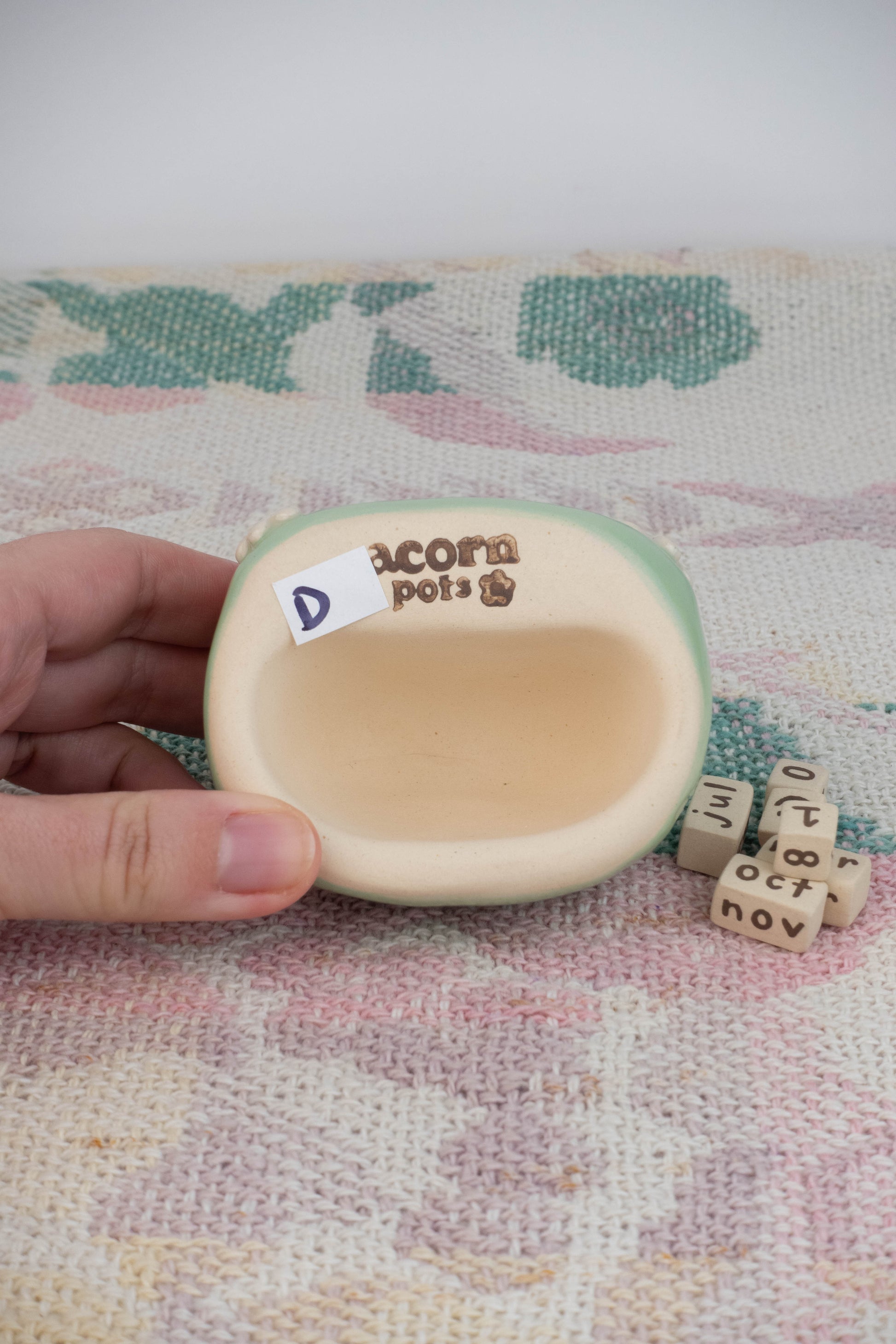This listing is for 1 frog calendar which includes: the frog itself, 3 number blocks, 3 month rectangular blocks. All pieces are made of stoneware ceramic and glazed with various colours!