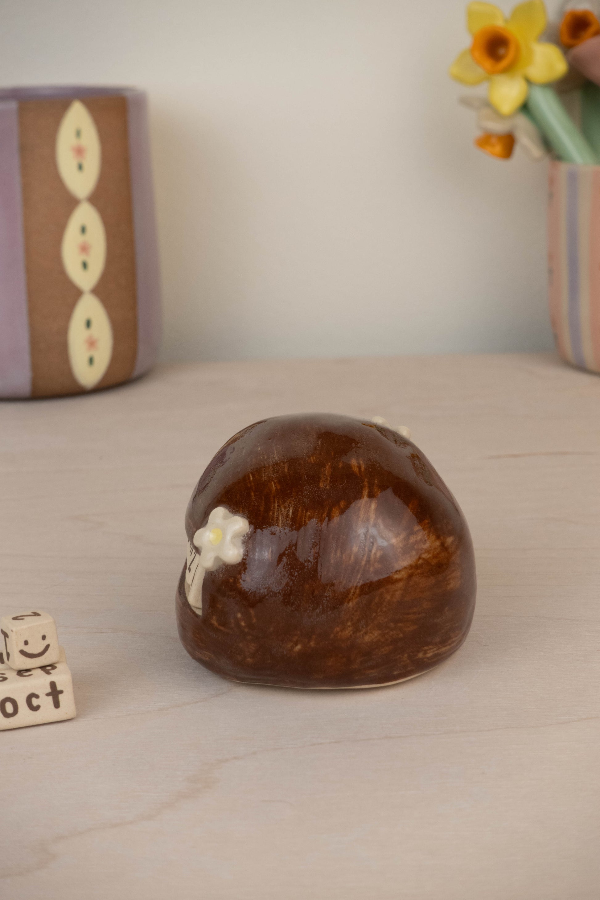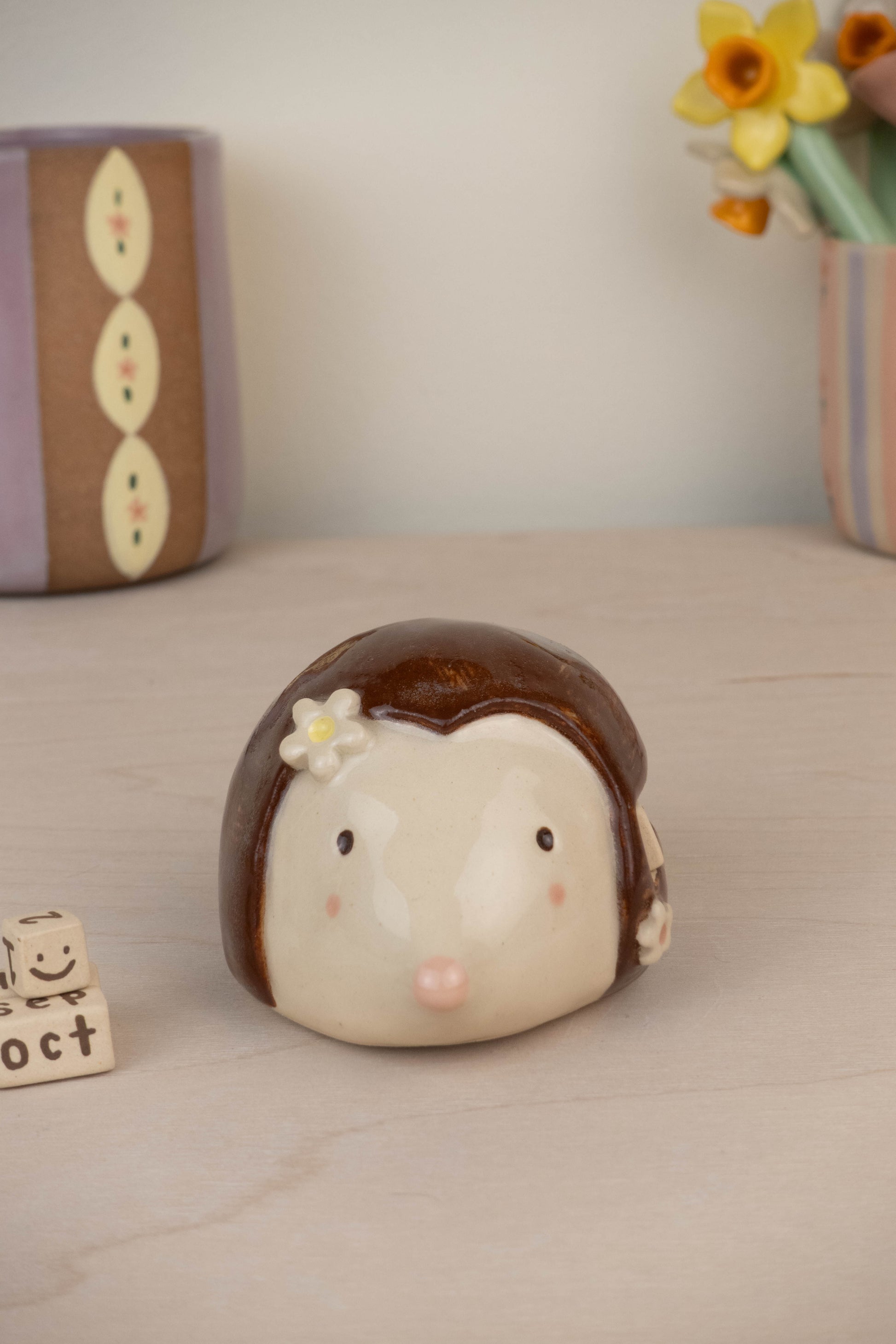 This listing is for 1 hedgehog calendar which includes: the hedgehog itself, 3 number blocks, 3 month rectangular blocks. All pieces are made of stoneware ceramic and glazed with various colours!