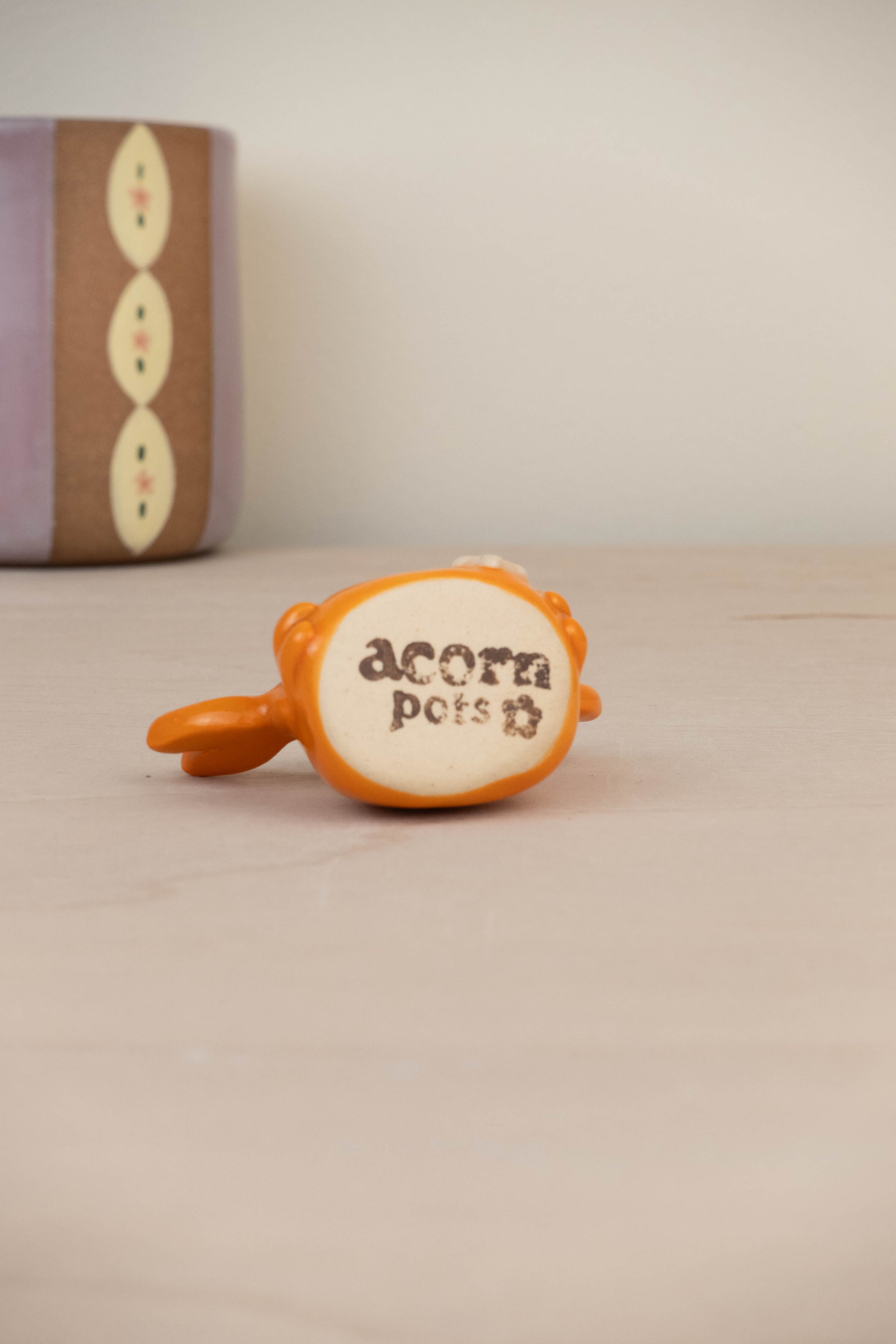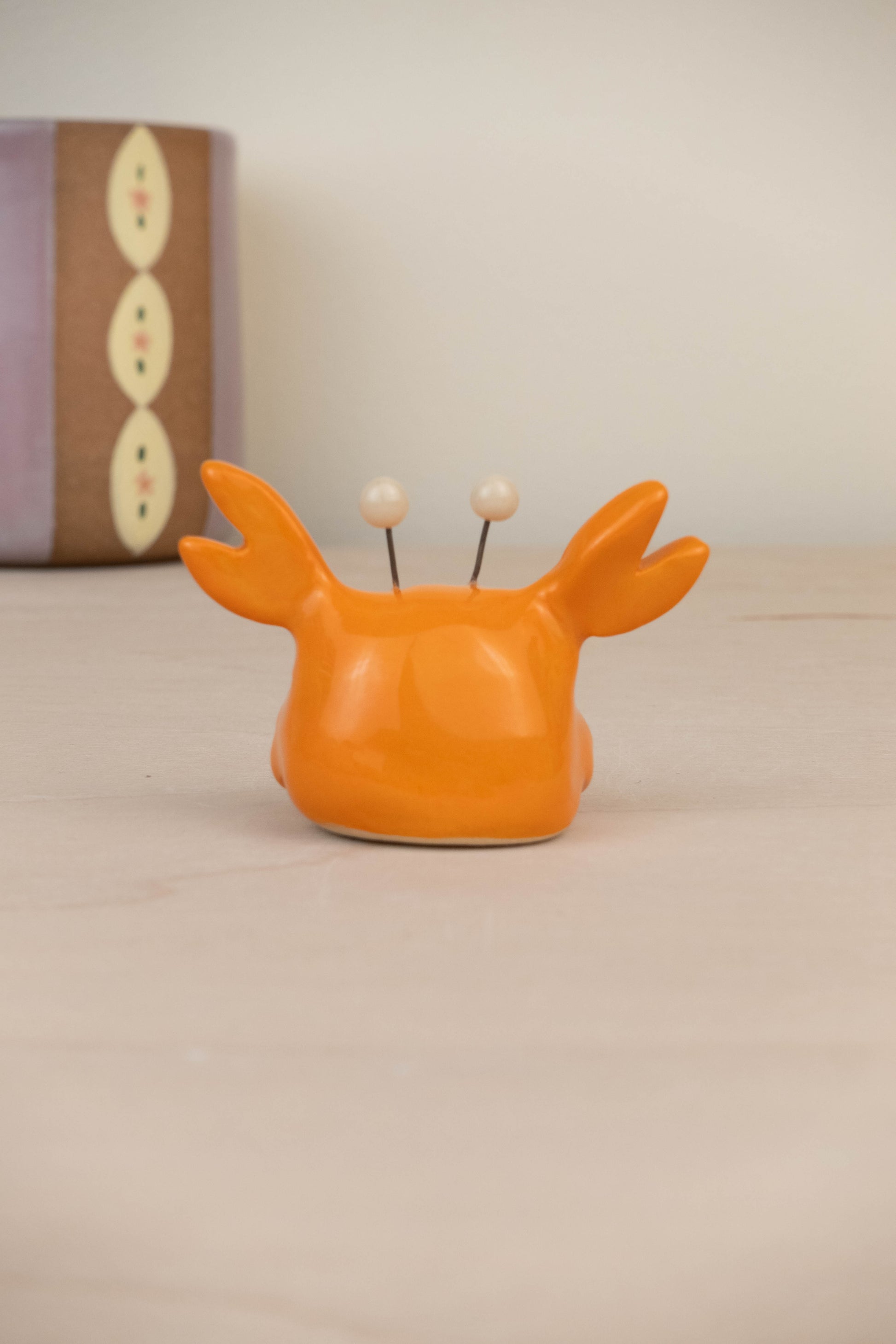 This is a mini crab! It is made of stoneware and glazed with various colours!