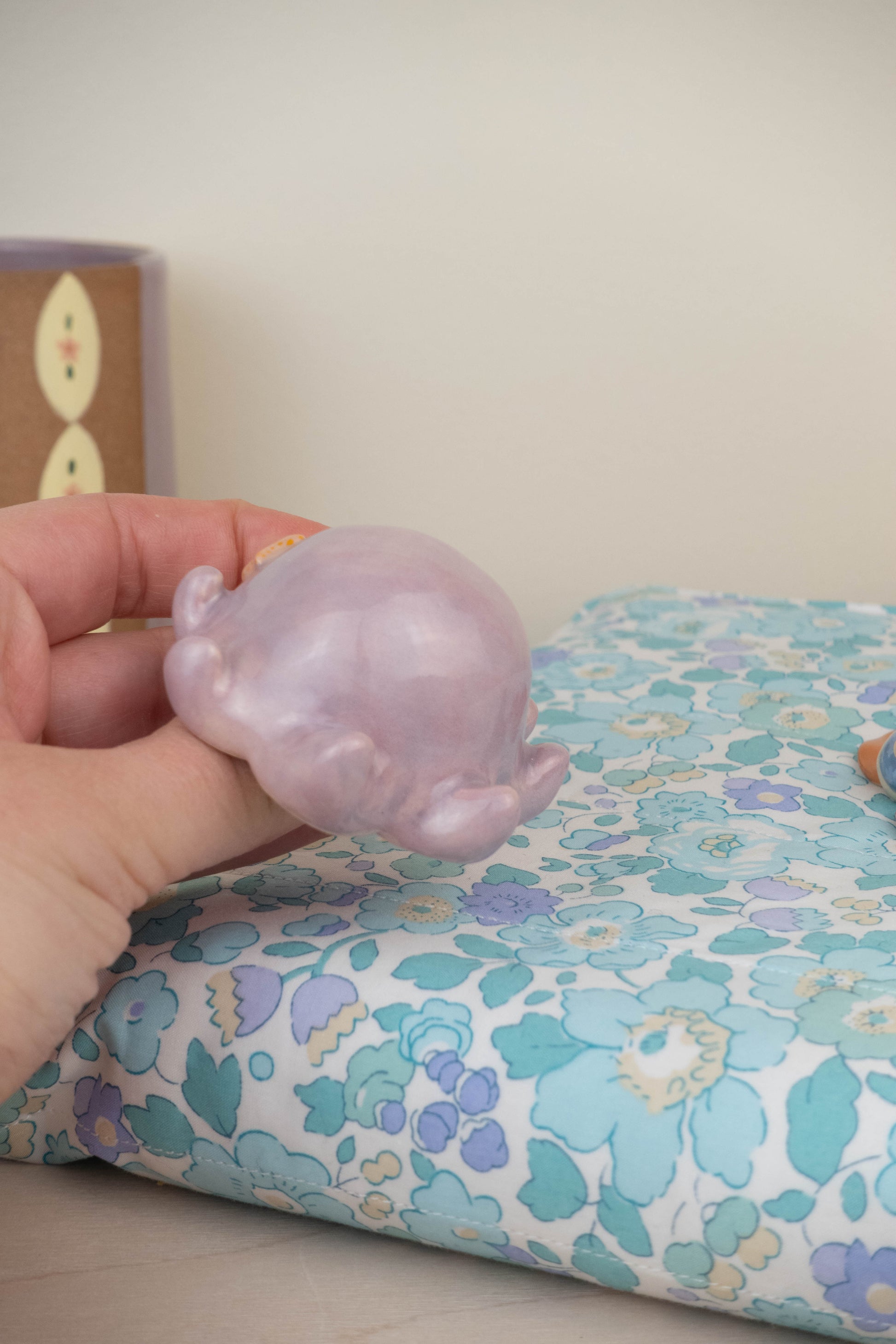 This is a mini octopus! It is made of stoneware and glazed with various colours! it also comes with the 6 tiny hats that you can interchange for the seasons/holidays! (it includes party hat, witch hat, santa hat, sunhat, beanie, & cowboy hat)