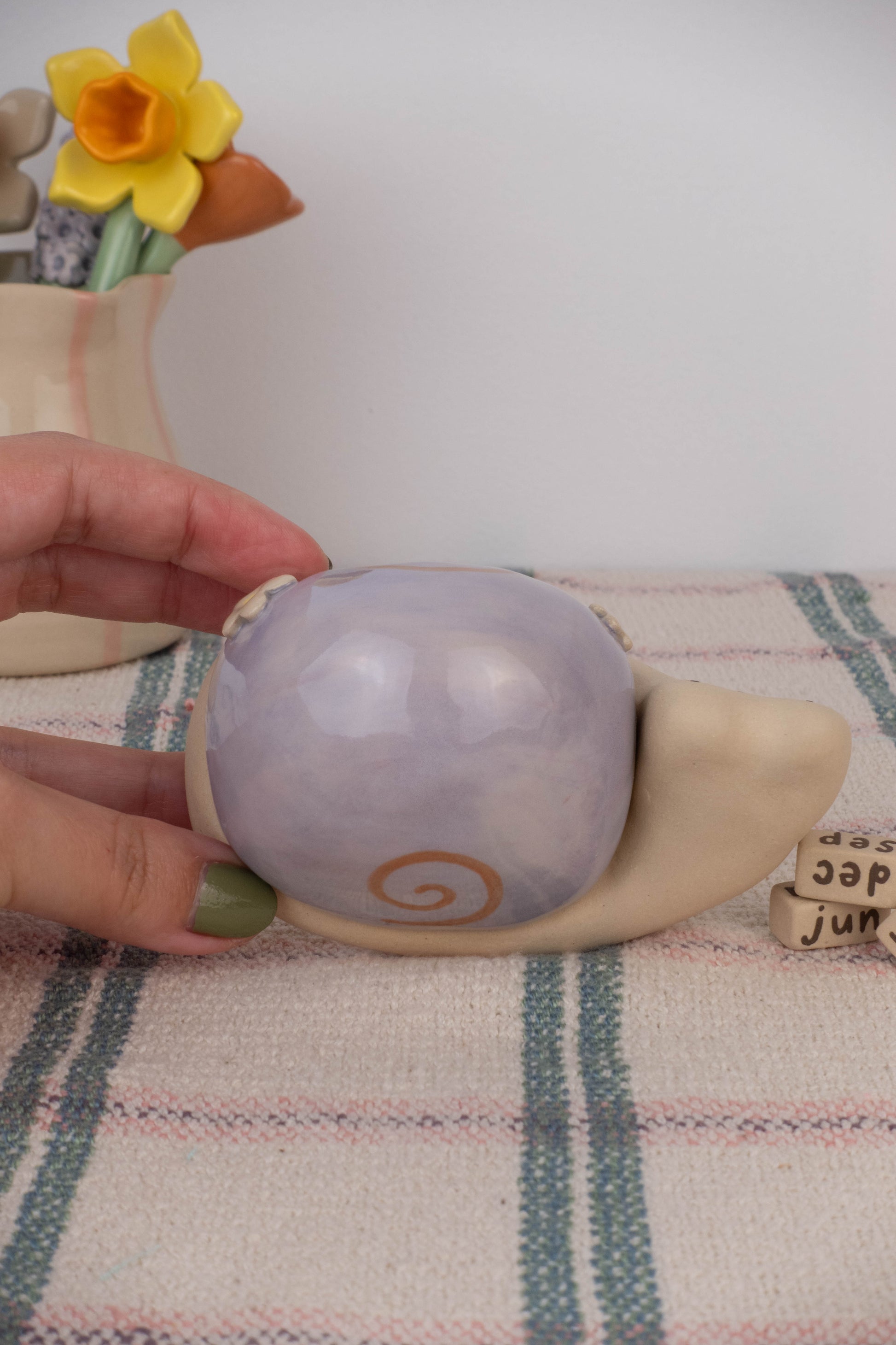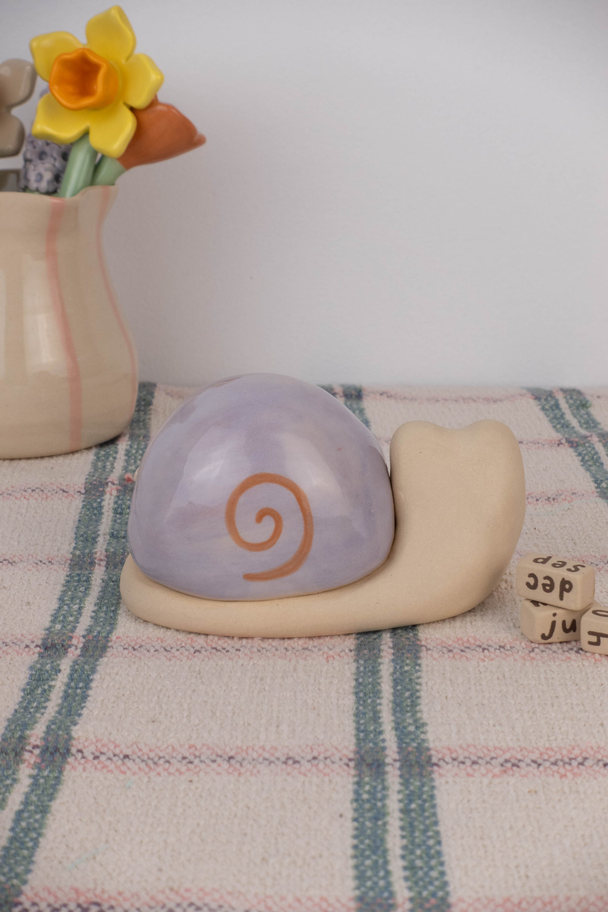 This listing is for 1 snail calendar which includes: the snail itself, 3 number blocks, 3 month rectangular blocks. All pieces are made of stoneware ceramic and glazed with various colours!